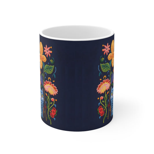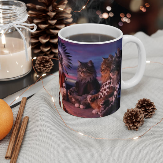 Cute Cottagecore Kitty Cat Coffee Mug Whimsical Old Fashioned Wraparound Art