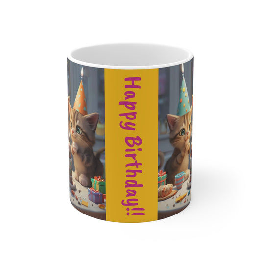 3-D Coffee Mug Cute Kitties Making Wish Candles Birthday Cake Gift for Cat Lover