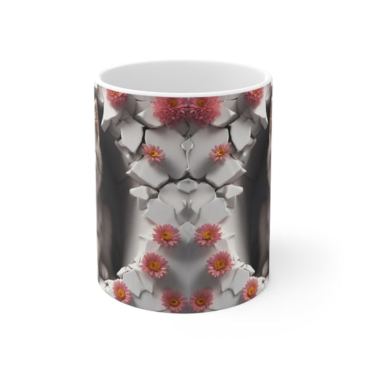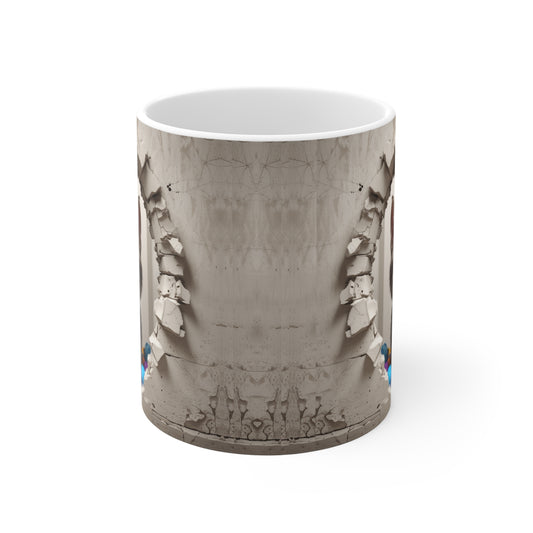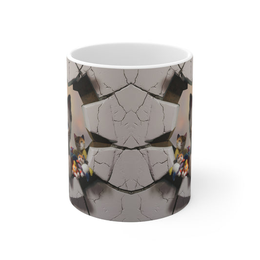 3D White Tabby Kitty Peeking Through Hole in Wall Coffee Mug Gift for Cat Lover