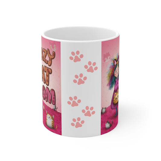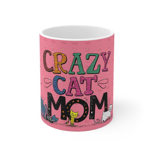 CRAZY CAT MOM Coffee Mug Whimsical Funny Gift for Cat Kitty Lover Ceramic 11 Oz