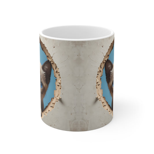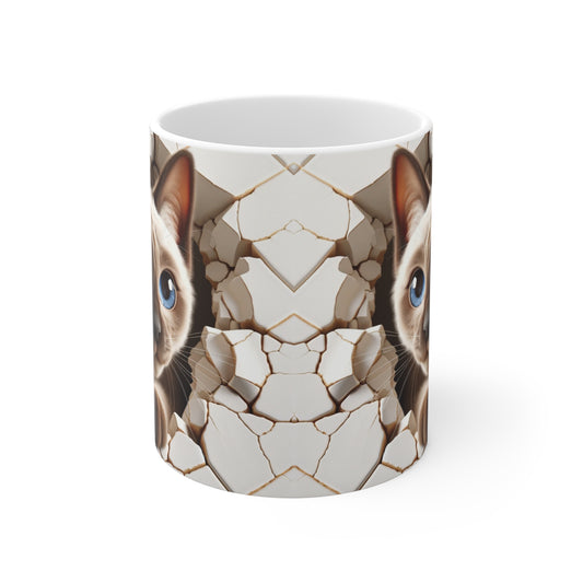 3D Siamese Kitty Coffee Mug Peeking Through Hole in Wall Gift for Cat Lover
