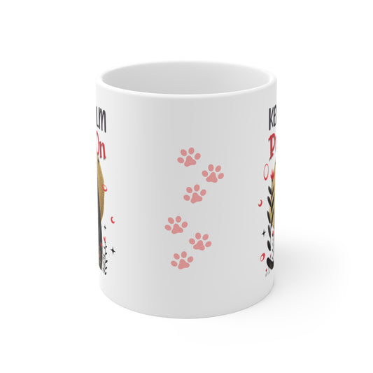 Whimsical Cute Kitty Coffee Mug "Keep Calm and Purr On" Gift for Cat Lover, Ceramic, 11 Oz