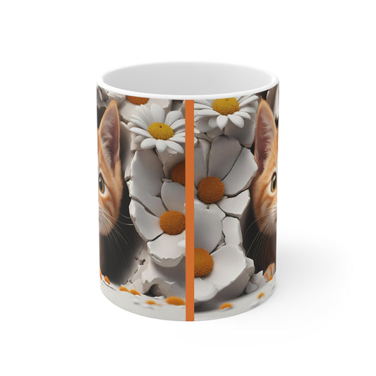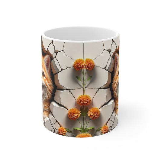 3D Orange Tabby Kitty Smiling Through Hole in Wall Coffee Mug Gift for Cat Lover